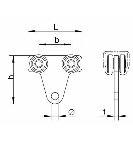 mit 2-achsigem Laufwerk · mit Pendelgelenk aus Kunststoff · Metalltüren · doppelpaariger Hänger (Einzeltransport) · für Vorhänge und Planen · Stahl verzinkt, gelb Weitere technische Eigenschaften: · Oberfläche: galvanisch gelb verzinkt · d: 8mm · b: 34mm · Ausführung: höhenverstellbar · Material: Stahl · Flügelgewicht: 45kg · l: 60mm · h: 50mm · t: 4,5mm