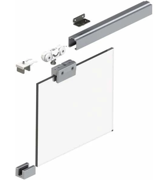 bestehend aus: Komplettgarnitur und Laufschiene · für einflügelige Glasschiebetüren bis 50 kg Flügelgewicht und 8 mm Glasstärke (ESG) · Rollapparate mit Kugellager und Tragschraube verzinkt, M8 x 35 mm Komplettgarnitur Inhalt: 2 x HELM 73 Rollapparat, 2 x HELM Glasklemmstück 70 mm (8 mm ESG), 2 x HELM 65 P Fangstopper, 1 x HELM SmartGuide G (8-12,76 mm) geprüft nach DIN 1527:2013 200.000 Zyklen Weitere technische Eigenschaften: · Typ: Komplettset